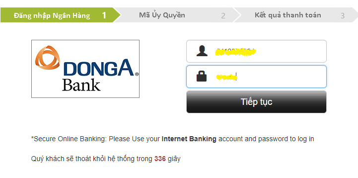 Đăng nhập tài khoản và mật khẩu Internet Banking để tiếp tục thực hiện giao dịch