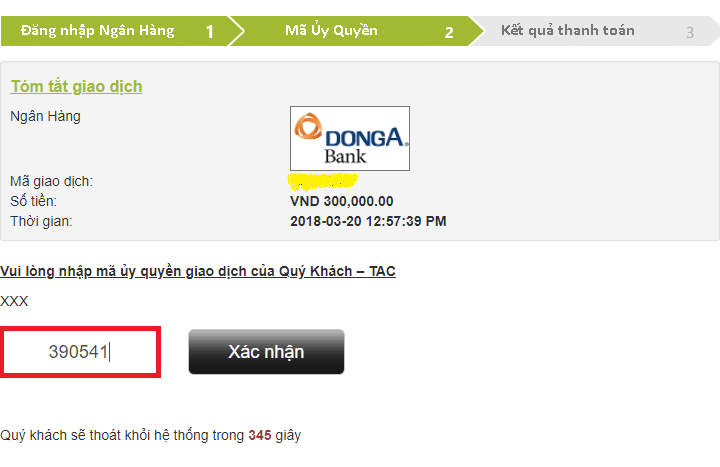 Nhập mã OTP gửi về số điện thoại đăng ký Internet Banking và hoàn thành giao dịch