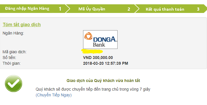 Thông báo thực hiện giao dịch thành công chuyển tiền vào tài khoản FB88.COM
